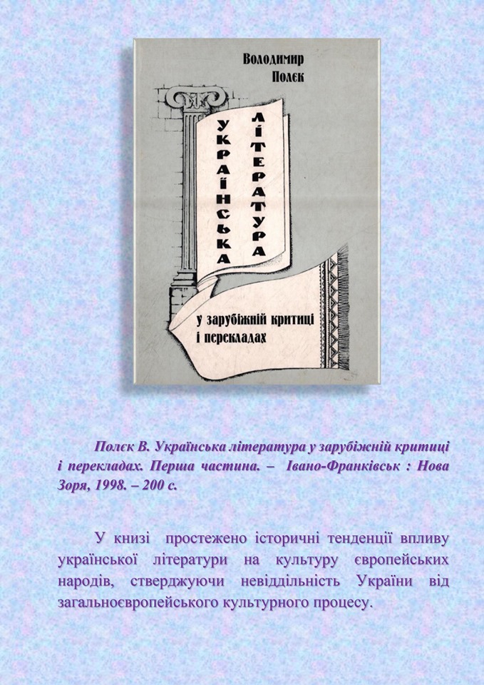 Українська література у зарубіжній критиці і перекладах. Ч. 1. – Івано-Франківськ : Нова Зоря, 1998. – 200 с.,