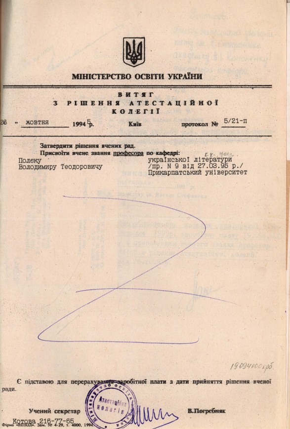 ІМЕННИЙ ФОНД ПРОФЕСОРА В. Т. ПОЛЄКА У НАУКОВІЙ БІБЛІОТЕЦІ ПРИКАРПАТСЬКОГО НАЦІОНАЛЬНОГО УНІВЕРСИТЕТУ ІМЕНІ ВАСИЛЯ СТЕФАНИКА